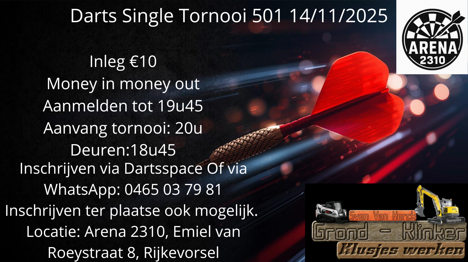 Single Tornooi 501 Vrijdag 24/10/2025 |